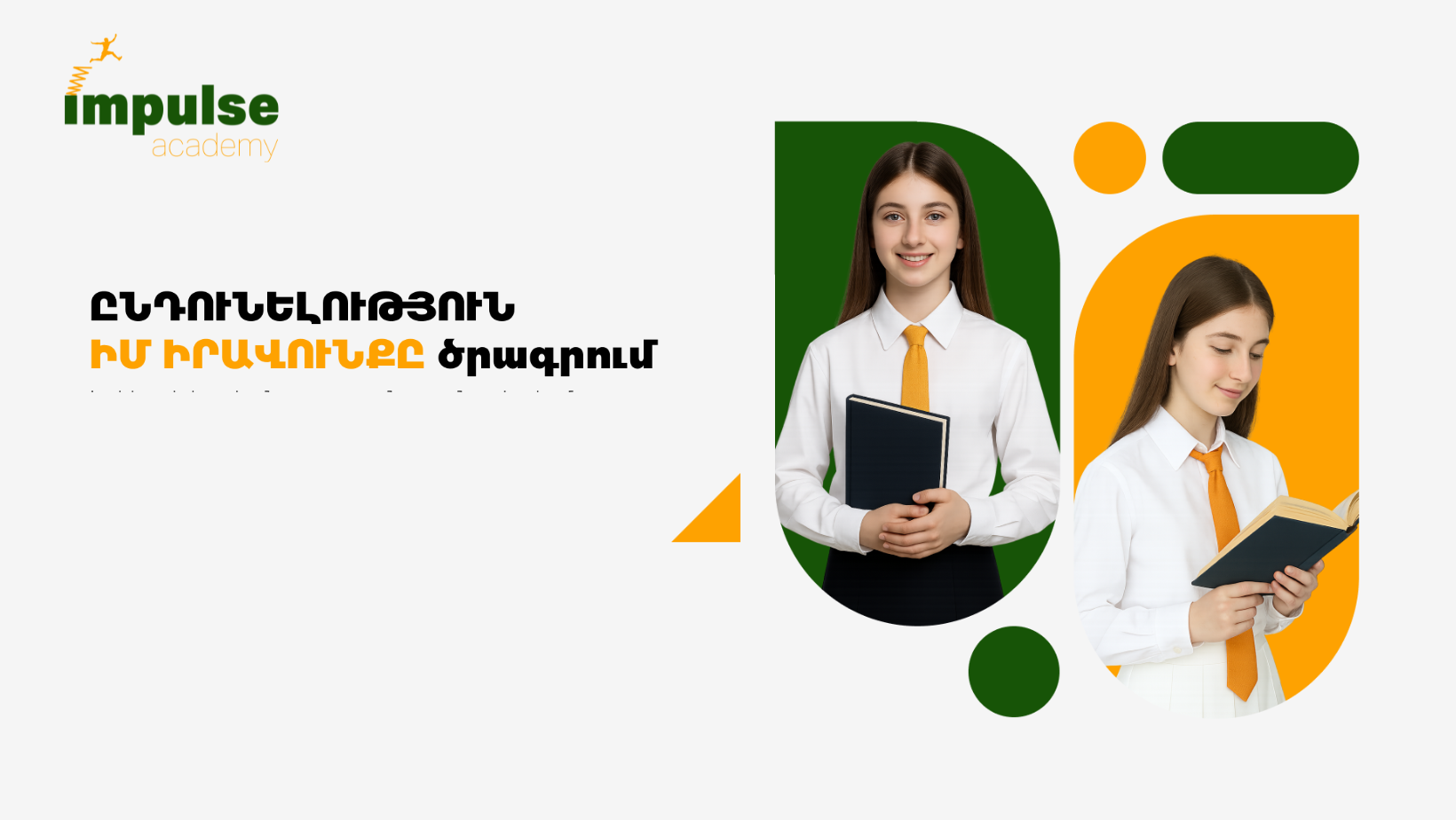 Իմպուլսը պարզապես ուսուցում չէ, այլ՝ միջավայր, որը ձևավորում է մտածողություն ՆԵՐԿԱՅՈՒՄ՝ տրամադրելով զարգանալու համար լավագույն հնարավորությունները: 2019 թվականից մենք օգնում ենք մեր մասնակիցներին հասնել նոր հաջողությունների։
